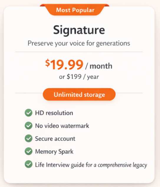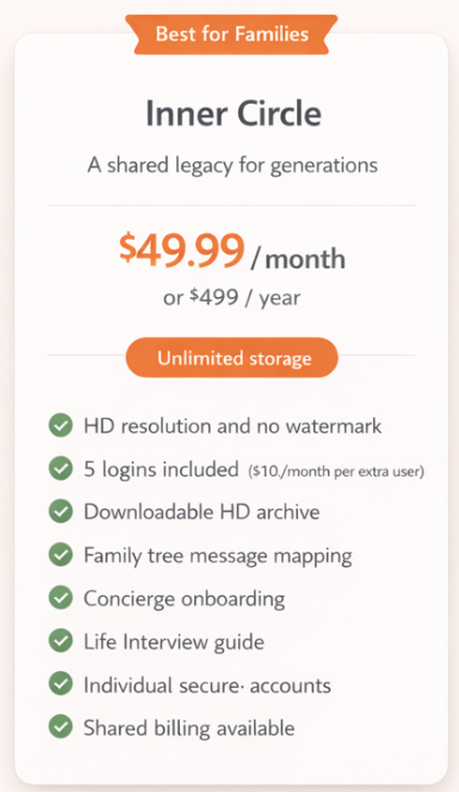 Record heartfelt messages, share them securely, and preserve them for the people who matter most across generations.